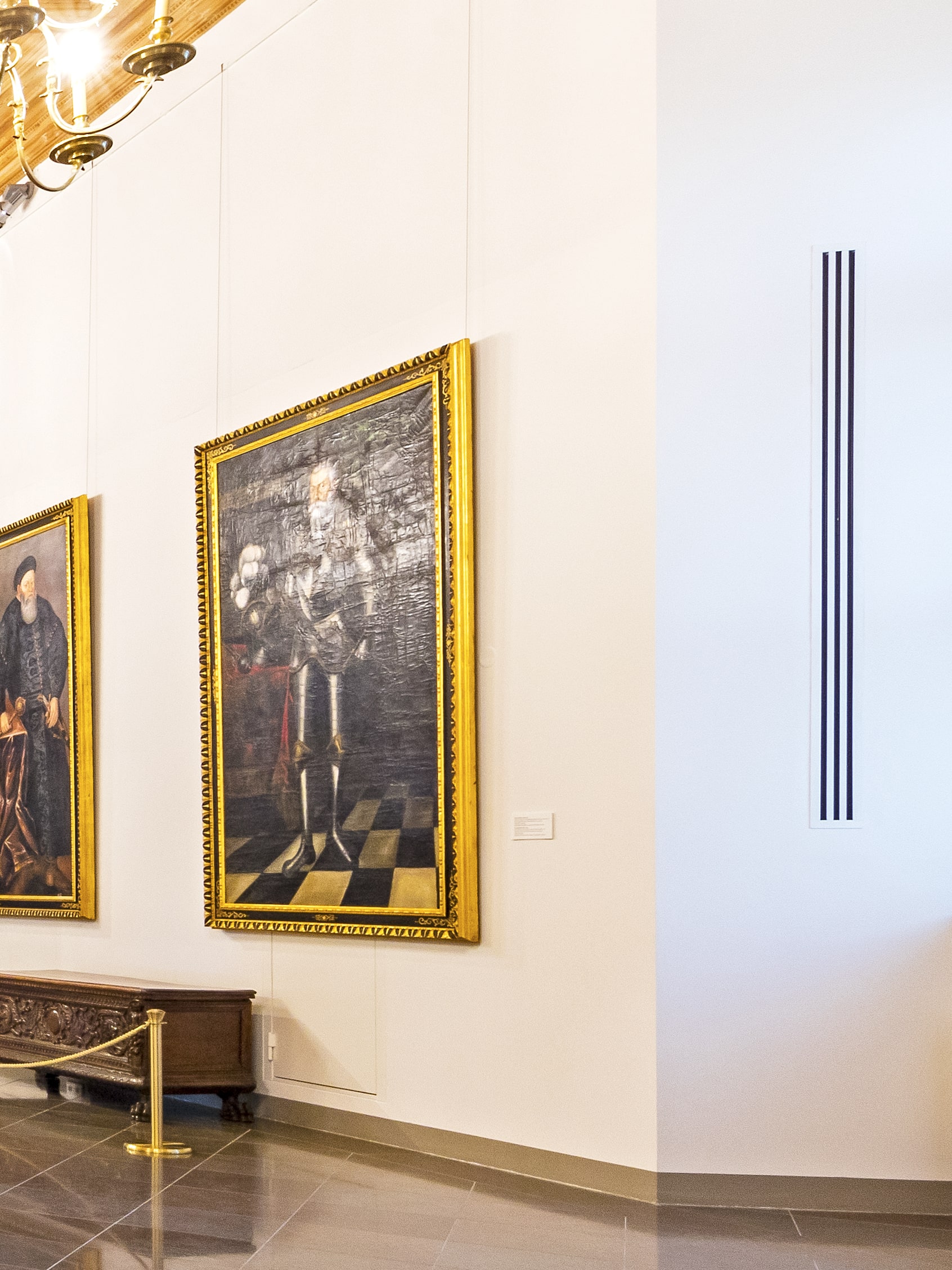 В дворце великих князей литовских в различных залах и помещениях установленные решения для вентиляции и лучистого отопления, не повреждая интерьера и прекрасно выполняя свои функции и обеспечивая тепло и подачу свежего воздуха.